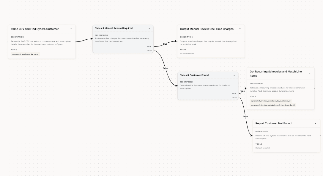 A $2M MSP spent 5 days/month manually auditing invoices — and had tried to automate it for 2 years. The business logic lived in scattered documentation that no script could capture. With Bumblebee, those rules became workflow prompts. Result: $800/month in billing errors caught, and 5 days of labor reduced to 1 day a month.